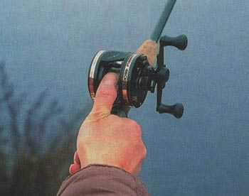 Нужно помнить один очень важный нюанс — такая снасть никогда не забрасывается из-за головы. Сначала начинающим рыбакам рекомендуется пристально изучить технику бокового заброса. Переключите катушку в режим заброса, удерживая палец на шпуле мультипликатора попробуйте совершить заброс. Палец необходимо убрать в момент начала схода лески с катушки.