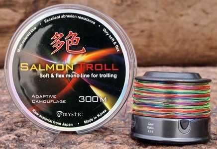 Для троллинговой ловли применяются мультипликаторные катушки усиленной конструкции. Шпуля таких катушек позволяет намотать до 1 км лески. Шнур для троллинговой ловли подбирается достаточной для предполагаемой добычи величиной нагрузки на разрыв. Толщина шнура может быть более 1 мм, при выборе лески для морского троллинга следует покупать специальные шнуры, предназначенные для ловли рыбы в солёной воде. Такие шнуры намного дольше прослужат при ловле в такой агрессивной среде, как морская вода.