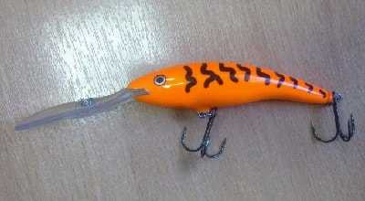 - Форма и вес используемых приманок. Вес приманки выбирается пропорционально предполагаемой добыче. Если в пресноводном водоёме водятся крупные сомы, то для троллинга выбираются живцы или воблеры массой до 500 гр.